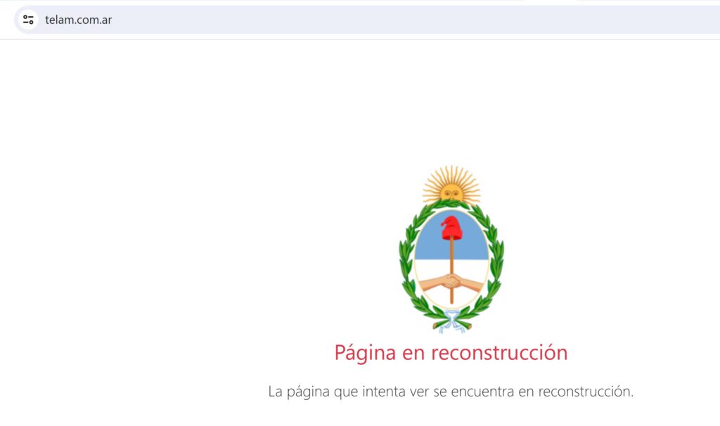 Al mismo tiempo el gobierno bajó la web de Télam, el servicio de cables y fotos que abonan cientos de medios de todo el país, y el archivo fotográfico.»Página en reconstrucción», es el mensaje que figura en la web. Milei también amenaza con cerrar la TV Pública y utilizar el mismo método de poner una placa anunciando la medida.
