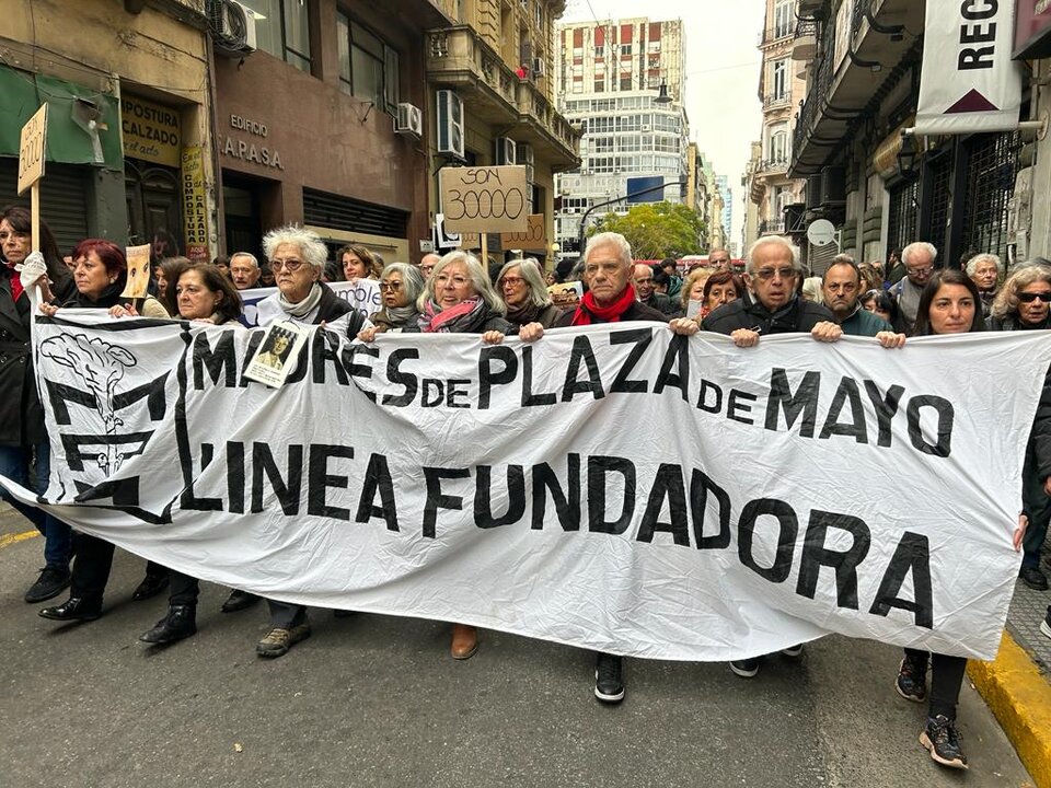 La zona empezó a llenarse desde temprano. El Encuentro Memoria, Verdad y Justicia brindó una conferencia de prensa al mediodía. En la sede de Madres de Plaza de Mayo- Línea Fundadora empezaron a congregarse distintos militantes para marchar juntos y juntas desde la calle Piedras hasta Avenida de Mayo. Eduardo Tavani, referente de la Asamblea Permanente por los Derechos Humanos (APDH), organizó una foto colectiva antes de salir a las calles. Las Madres no pudieron estar de manera presencial: muchas estaban en casa por el frío o porque estaban recuperándose de alguna dolencia. Desde el sur, Taty Almeida mandaba mensajes para que creciera la convocatoria.